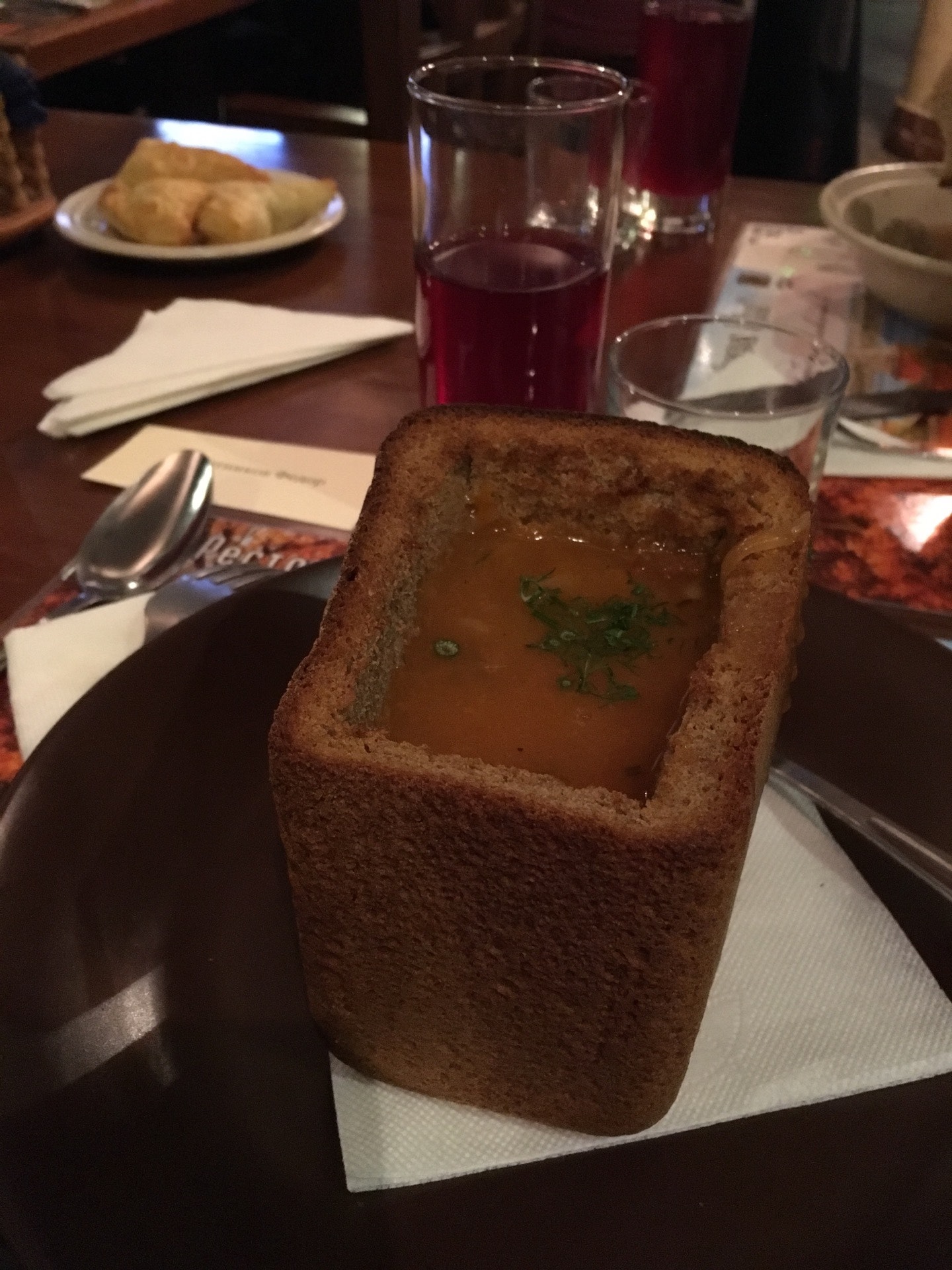 Душно. Обслуживание очень долгое. Приносят все не вовремя. Очень шумно. Блюда не вкусные и за такую цену - как будто в столовой.
