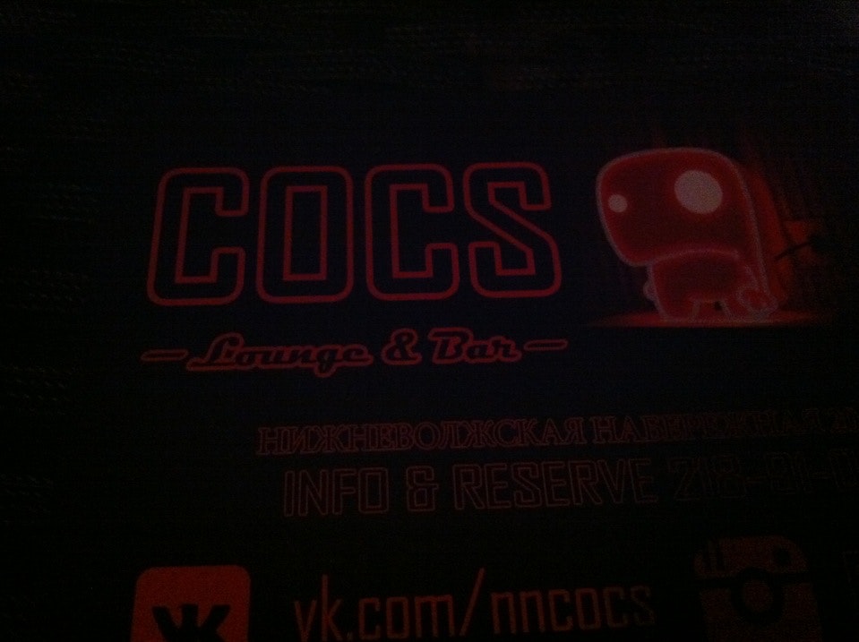 🍺 Адрес, телефон, часы работы и 2 отзыва посетителей о «Lounge-бар COCS».