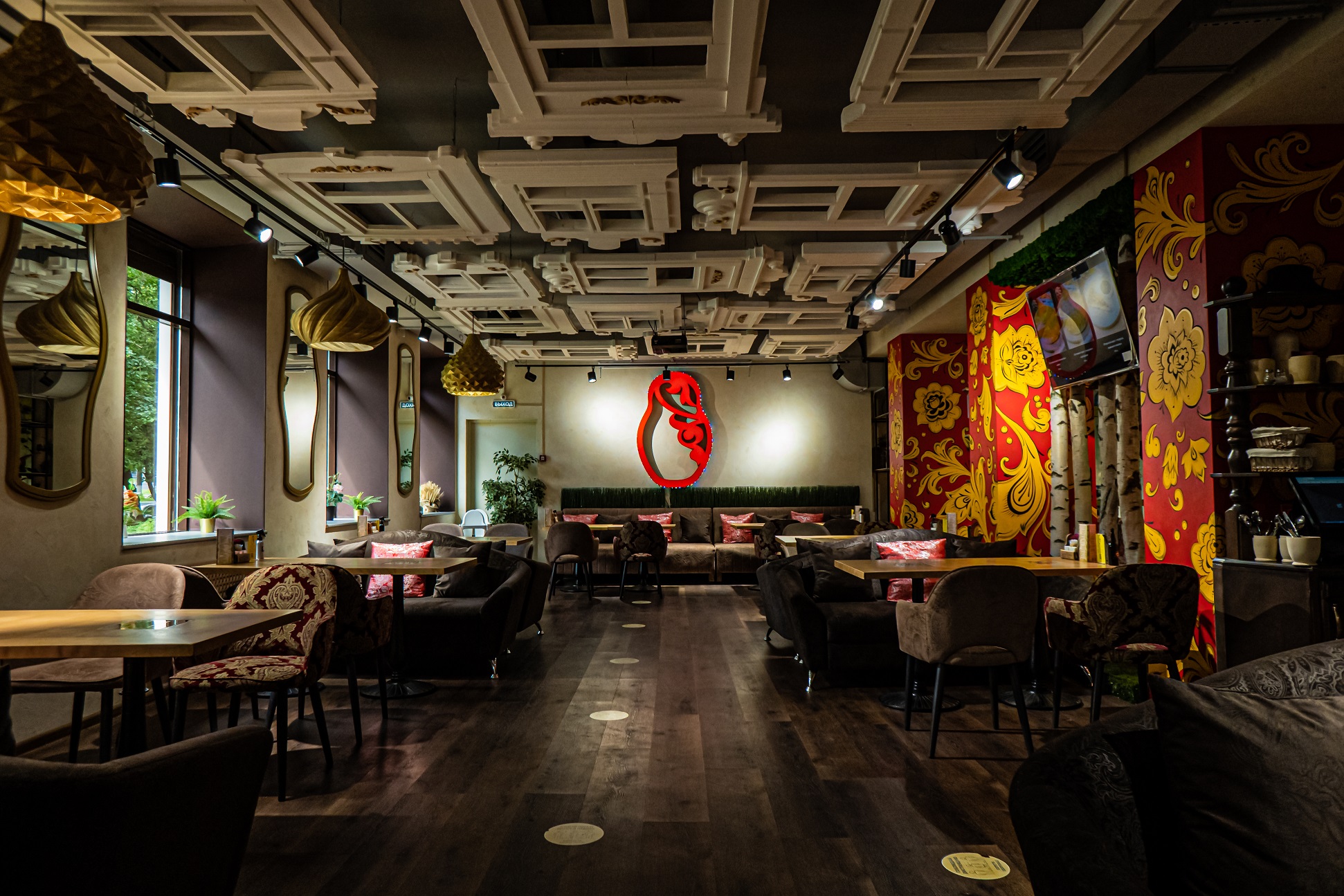 Ресторан «Матрёшка» — располагается в 10 мин от центра города, рядом с Парком Швейцария, напротив ТЦ Океанис. Аутентичный интерьер ресторана позволяет проводить любые мероприятия в русско-народной тематике (от свадьбы до бизнес тренинга). Наличие экранов и проектора очень помогает при необходимости просмотра видеоряда (роликов, слайдов). Имеется своя акустическая система, микрофоны. Наличие автоматических жалюзи позволяет затемнить ресторан в любое время суток.